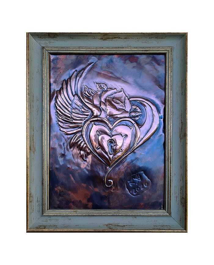 I Hand crafted this  beautiful repoussé copper artwork of “Devil Angel Heart