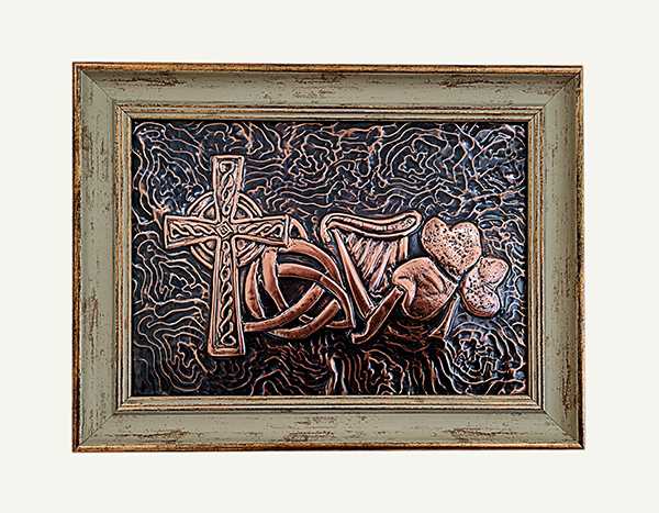 The Harp. is Ireland’s official national emblem. …The Celtic Cross. The Trinity Knot. … The Shamrock -The National Flower of Ireland. This copper wall art is so beautiful in its simplicity.