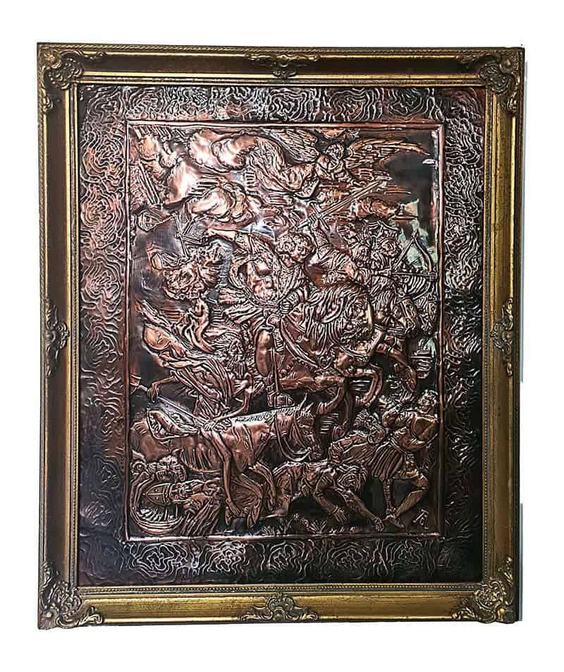 I used basic hand tools with primitive techniques to craft this copper artwork. The copper artwork size is 870mm x 660 mmÂ